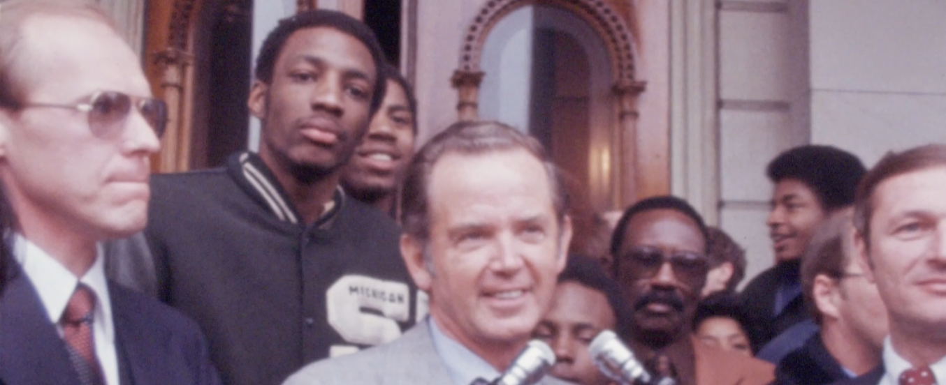 Governor Milliken, House Speaker Bobby Crim, and a myriad of legislators and state officials greeted the Spartans on the front stairs. Milliken spoke to the crowd, saying “as long as I’ve been governor of this state, I’ve never seen so much enthusiasm as this… it’s a great day.”