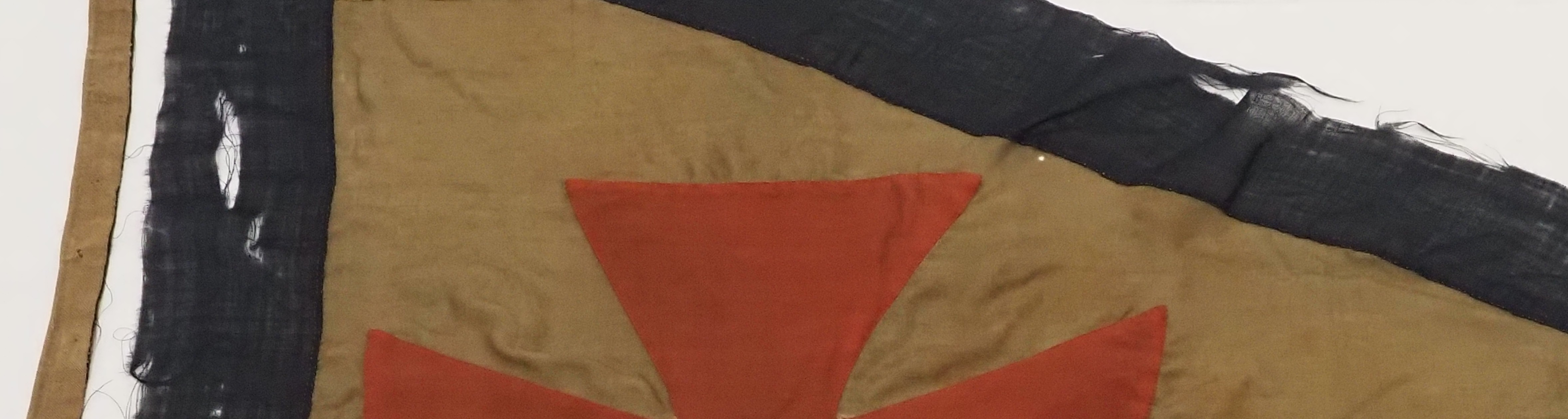 The flag being adopted has a very unique history. After coming into the state’s possession (date of accession unrecorded) the flag was mistakenly returned to the state of Kentucky in September of 1941. Well intentioned, although misguided, Michigan officials believed it to be a Kentucky confederate hospital flag and it was delivered to Kentucky officials as a part of the return of Confederate flags that had been captured by Michigan troops during the Civil War. Rare color film of a part of the ceremony that took place on the Michigan State Capitol steps may be seen here.